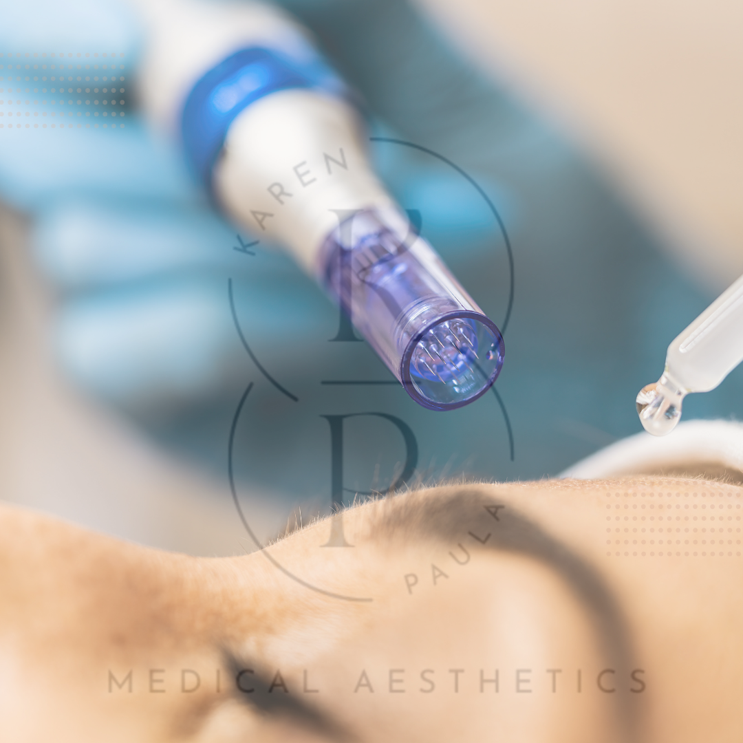 3. Microneedling with Custom Hyaluronic Acid Blend: Using the Dermapen, micro-needles create controlled micro-injuries to the skin, stimulating collagen and elastin production. A custom blend of hyaluronic acid is infused during the treatment to deeply hydrate and plump the skin.